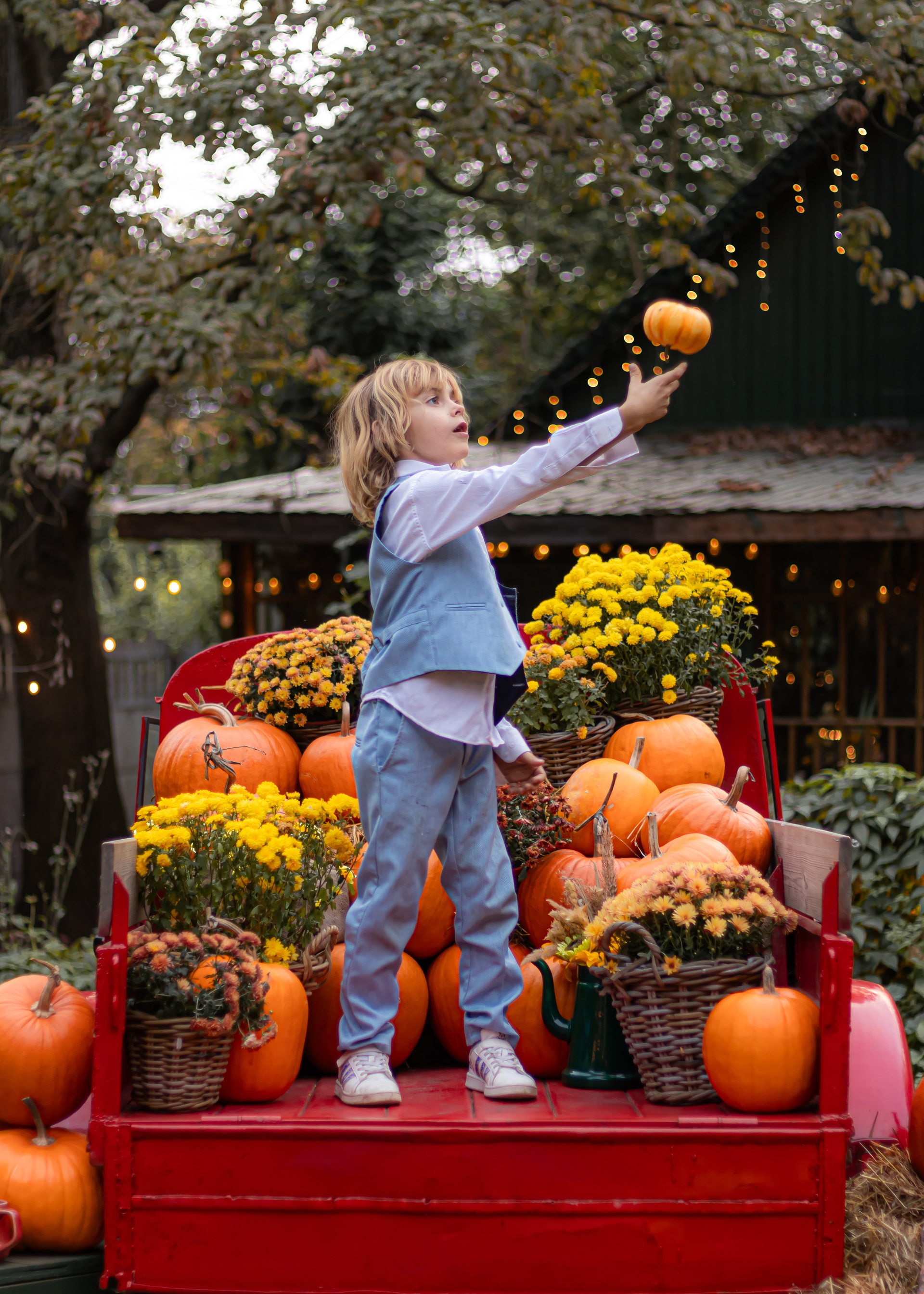 Фотосессия на ферме с рыжими тыквами — идеальный способ провести день всей семьёй, насладиться атмосферой уюта и сохранить тёплые воспоминания.