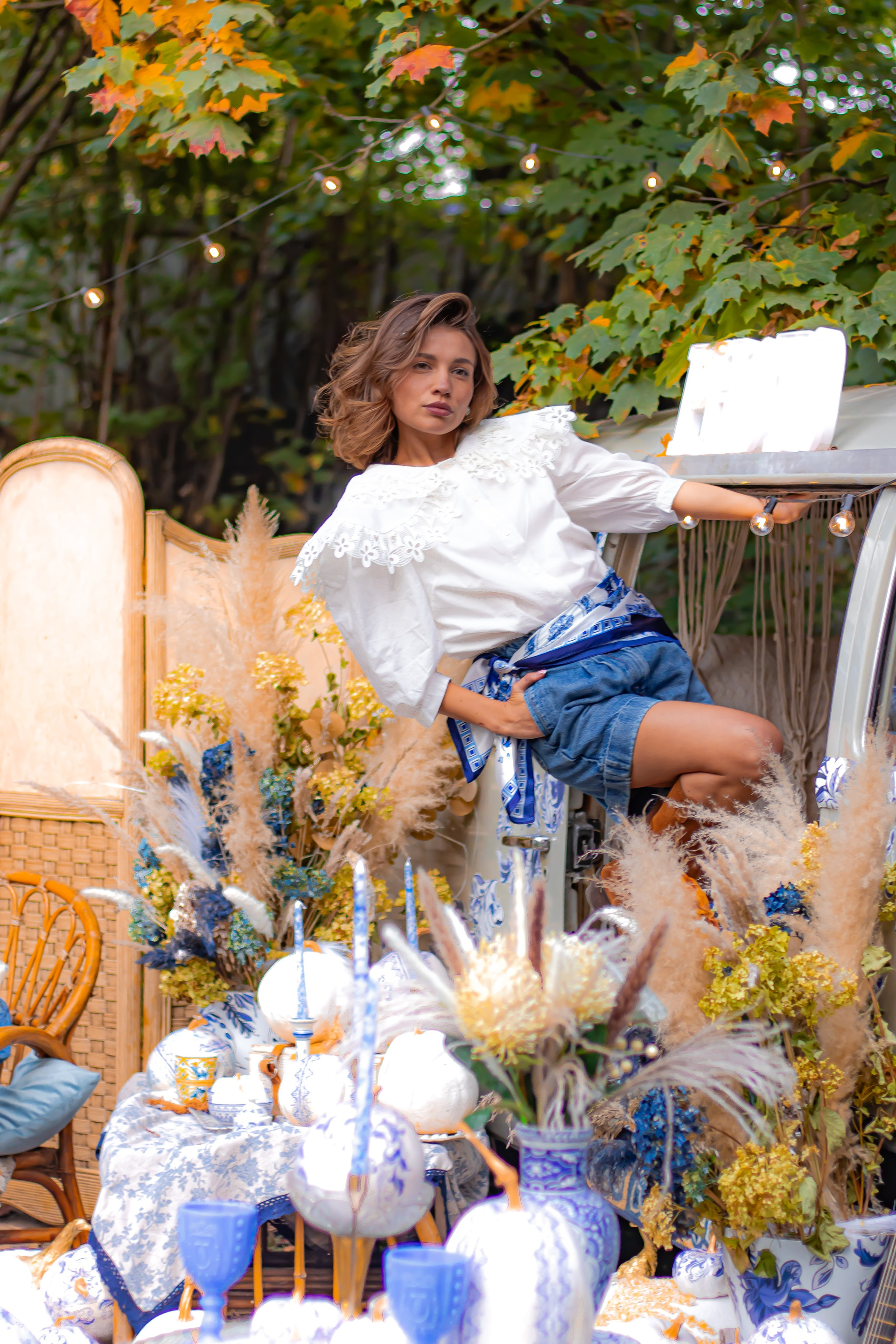 Белый ретро-фургон стал настоящей декорацией осени — стильной, нежной и по-домашнему уютной.