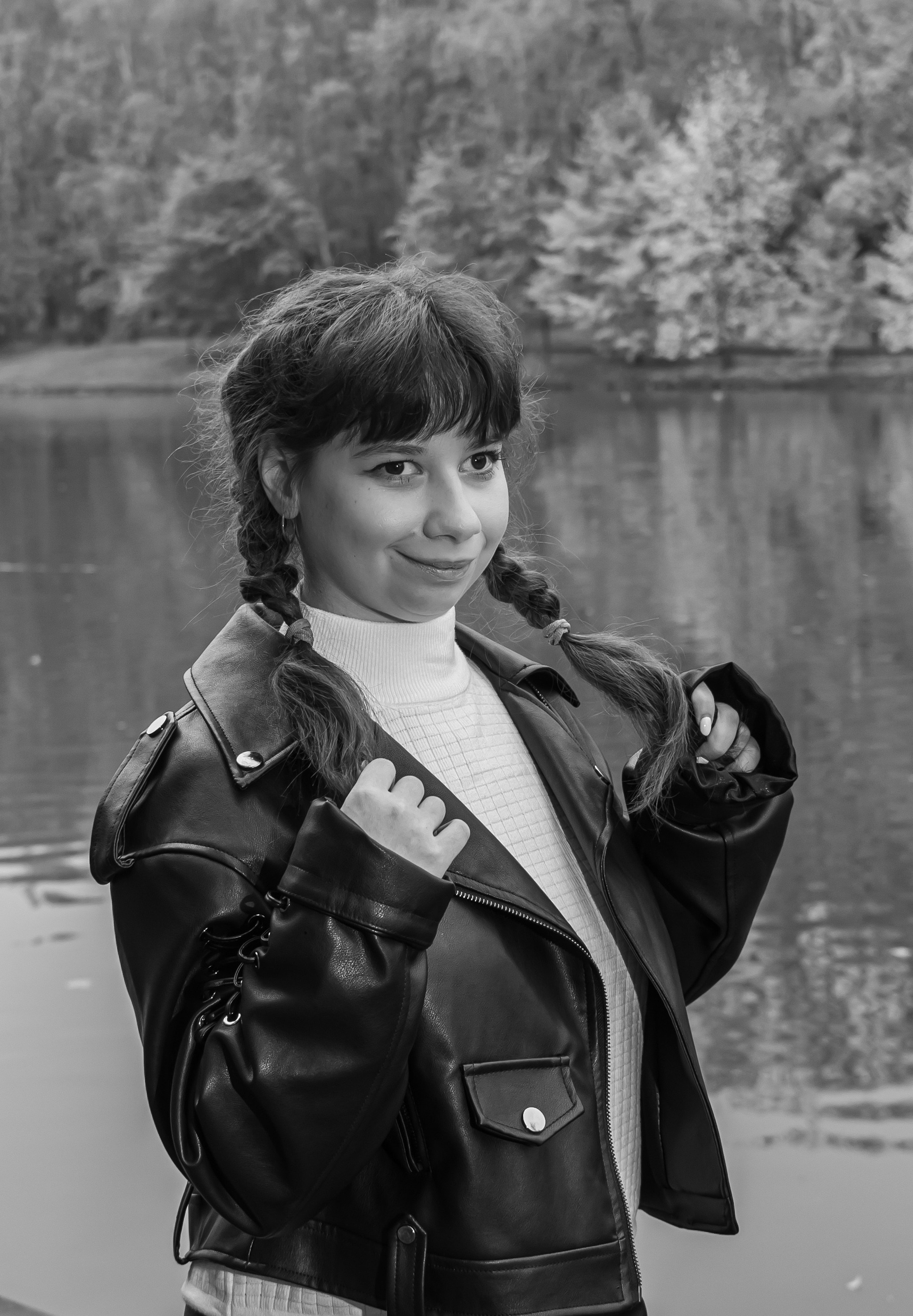 Тёплые краски октября, лёгкий ветер и улыбка, которая делает кадры живыми. Атмосферная съёмка Валерии в кожаной куртке и берете — история про свободу, осень и себя