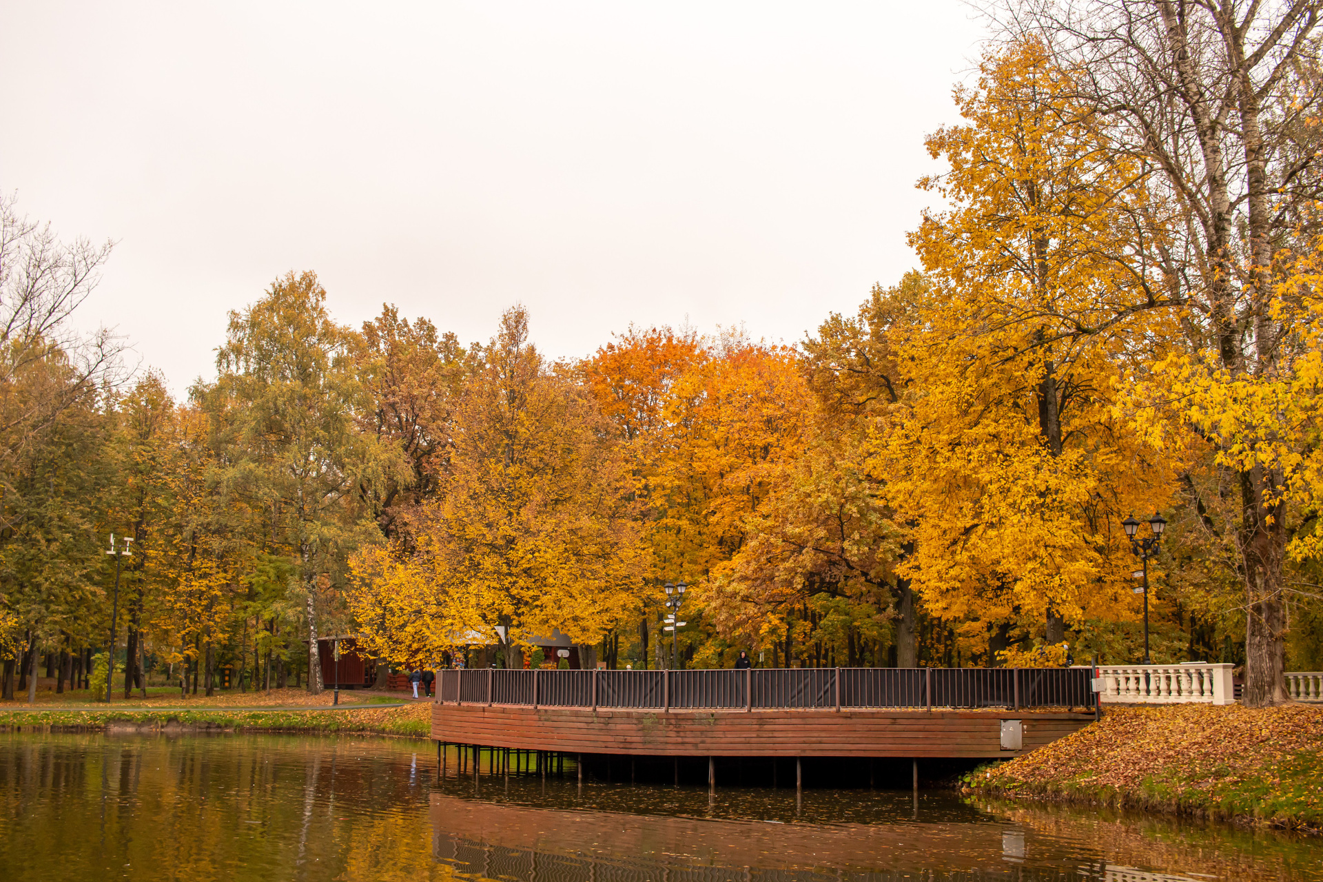 Мягкий свет, отражения в воде, жёлтые листья — всё работает на образ.