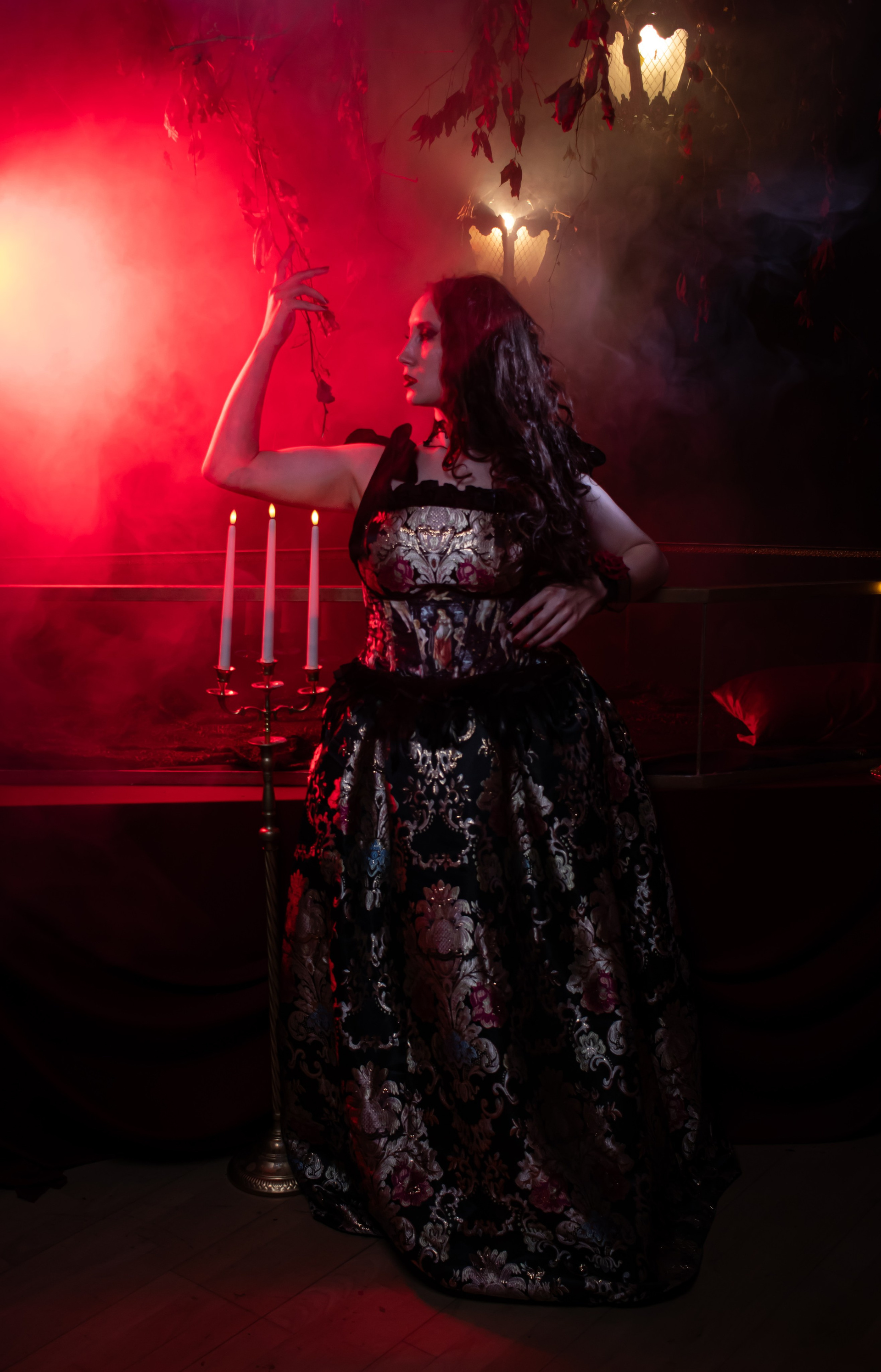 Готическая фотосессия в театральном свете — это не просто съёмка, а погружение в атмосферу сцены, эмоций и характера.