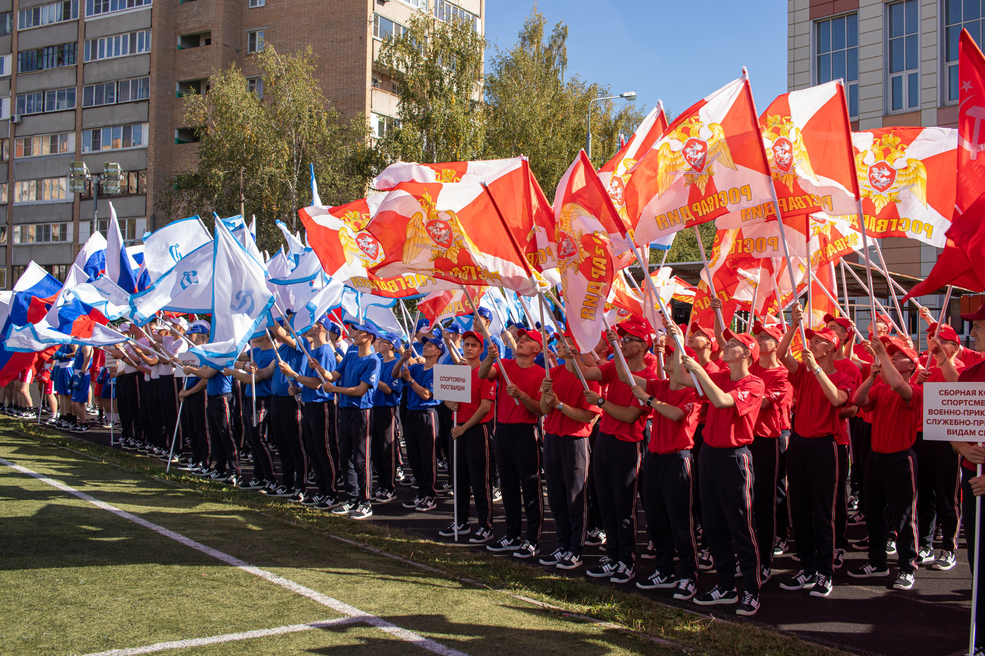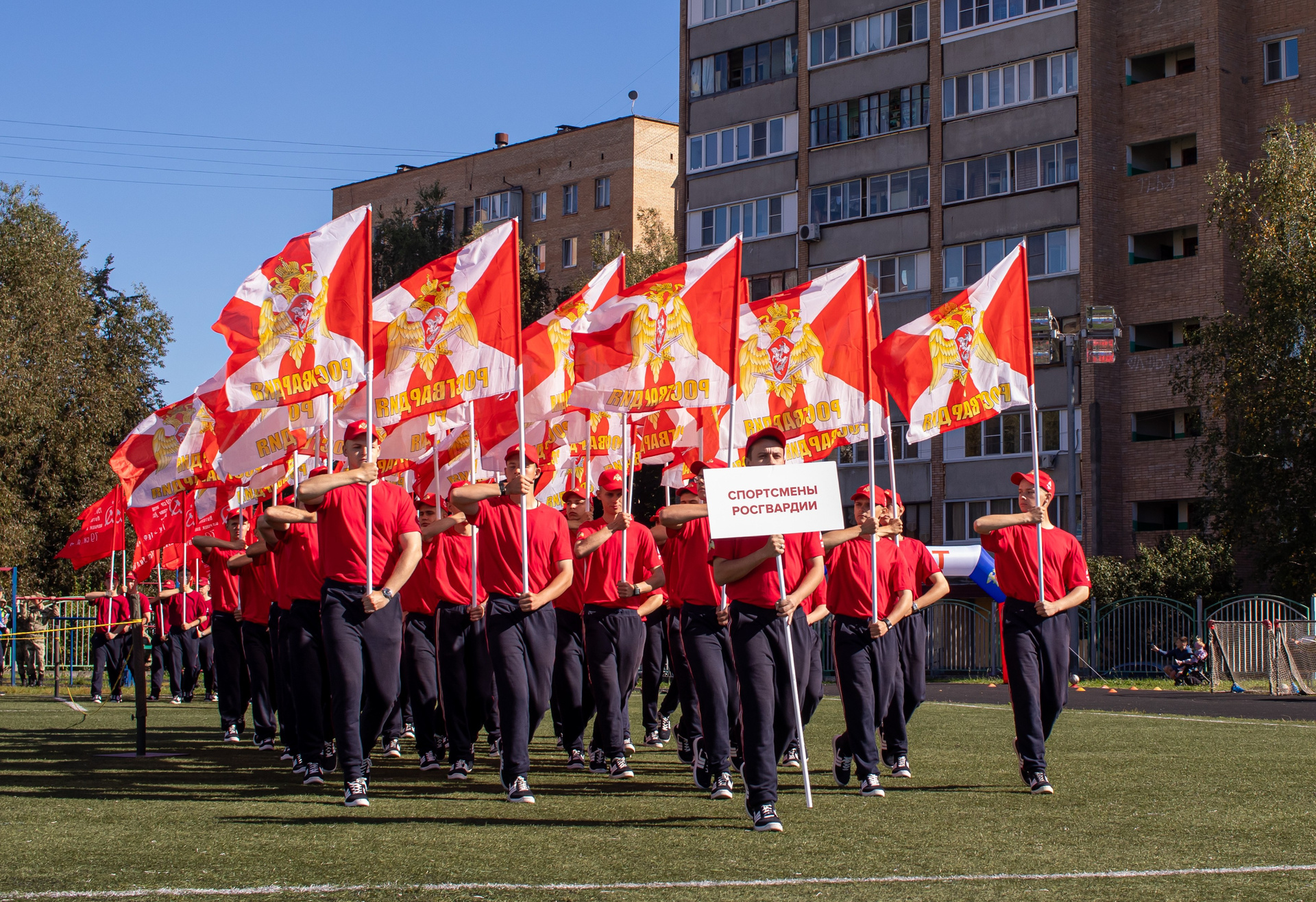 После торжественной части состоялось шествие спортсменов Росгвардии и спортивных коллективов. На поле вышли: